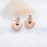 Titanium Steel Rose Gold Heart Zircon Stud Earrings