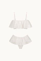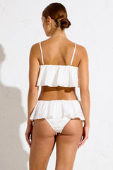 Turn heads and twirl with ease in this ultra-cute frilly kini set. Made from embroidered cotton, the flouncy top and skirted brief bring a cheeky, playful vibe to your beach days and poolside hangs. It's the perfect mix of sweet and sassy - wear it when you're feeling extra!
