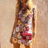 Lady's Flower Mesh Lace Embroidered Sheath Dress