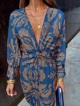 Summer Nine-quarter Sleeve V-neck Painted Dress